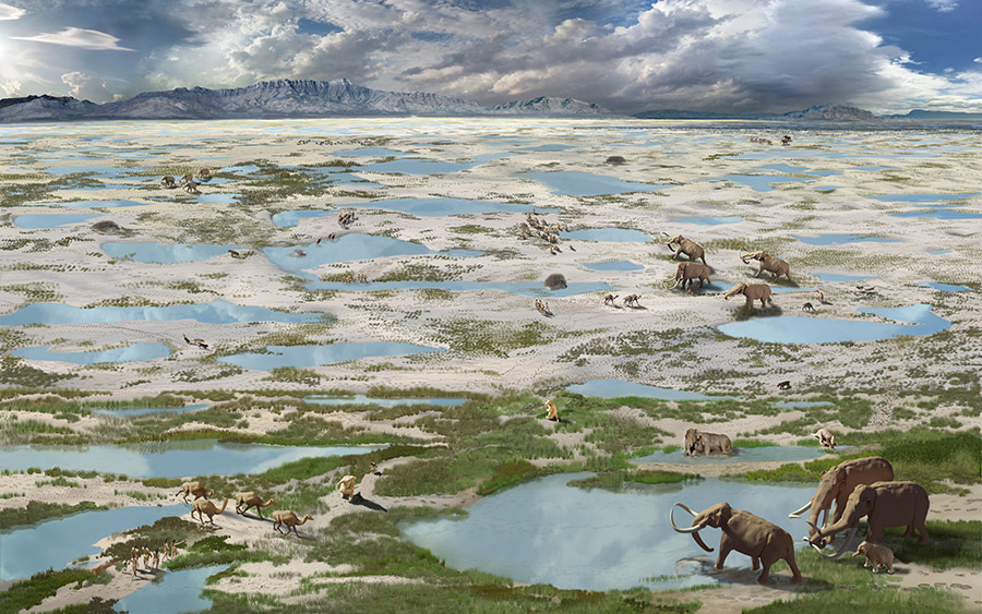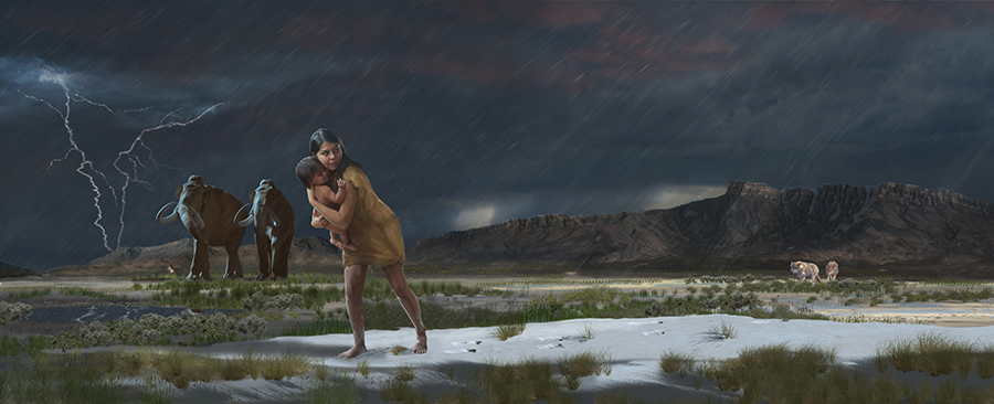 Shown: Children at play in ancient Lake Otero, in what is now the central valley of New Mexico.